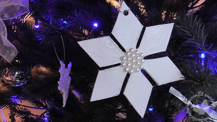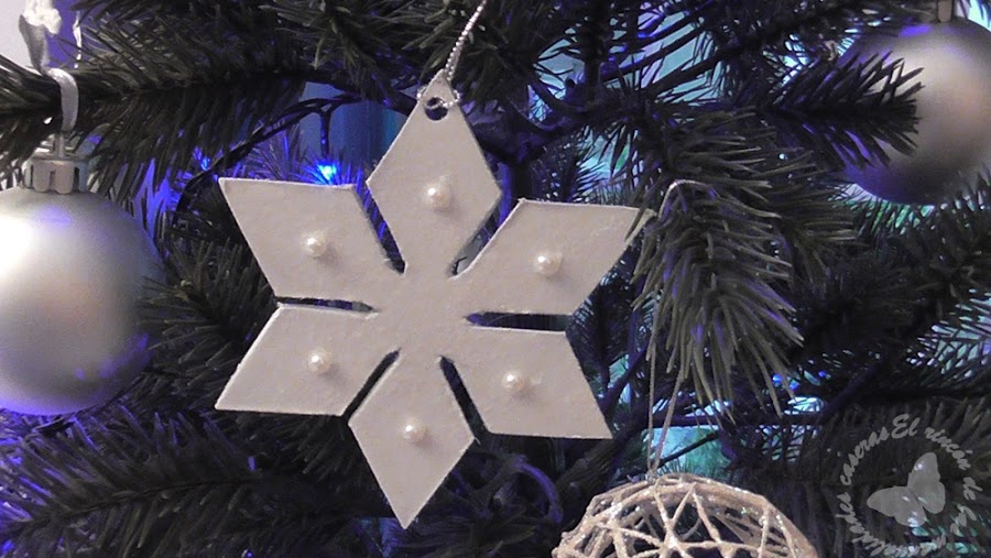 Te propongo dos ideas de adornos de navidad o de árbol de navidad que podrás hacer de manera fácil y con poco dinero. Con la primera idea os propongo reciclar restos de cartón (ya os he dicho que iba a ser barato). Vale cualquier cartón, si es muy fino bastará con poner más capas para darle cuerpo. Una vez hecho el copo de nieve con unas plantillas que podéis sacar de internet solo quedará pintar, barnizar.