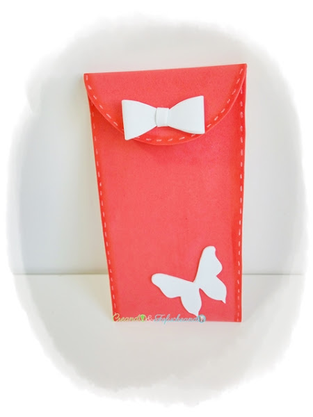 En la solapa colocaremos nuestro velcro a modo de cierre, y pegaremos esa gente que te comenté antes, jajaja, es decir: el lacito en el cierre y la mariposilla que se ha posado feliz en la parte baja.