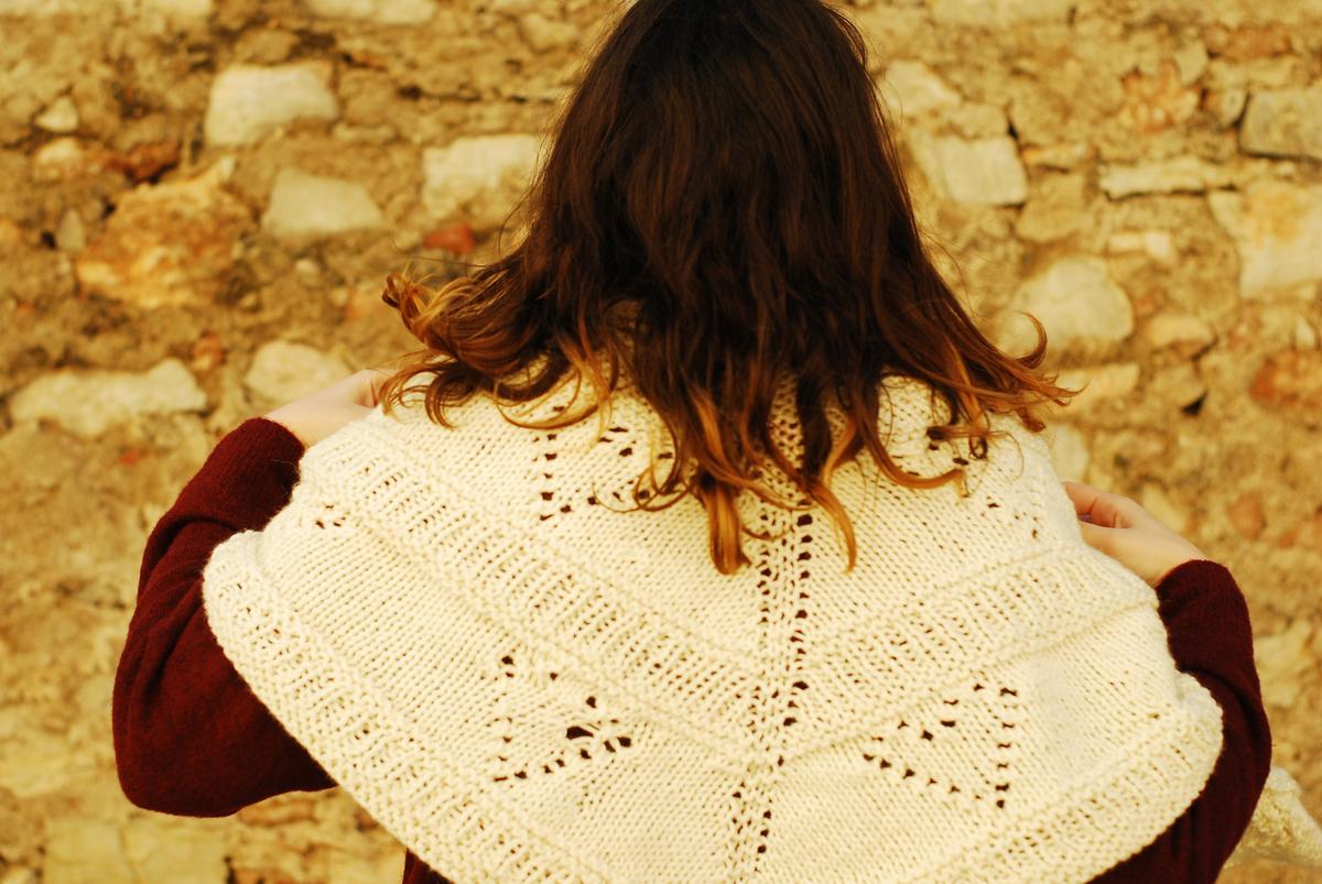 Aunque a mi me encanta probar y diseñarme mis propias cosas, a veces mi mente necesita tejer algo sin tener que ir deshaciendo y apuntando cada dos por tres y cuando vi este chal supe que lo iba a tejer.