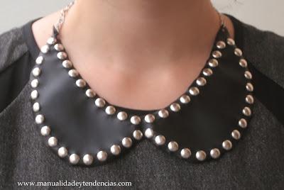 Manualidades y Tendencias nos trae este collar babero con la base cuero y decorado con tachuelas –