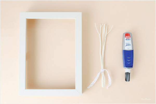 Si vas a hacer este DIY y quieres que quede bien pegado, te recomiendo que eches pegamento en los puntos donde las ramas tocan el marco y que le pongas encima un paquete de a kilo de lentejas o garbanzos hasta que se seque (no por nada, sino porque tienen la forma y el peso ideal para no chafar el ramo y a la vez mantener las ramas en contacto con él).