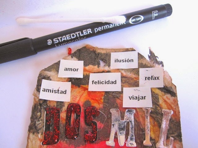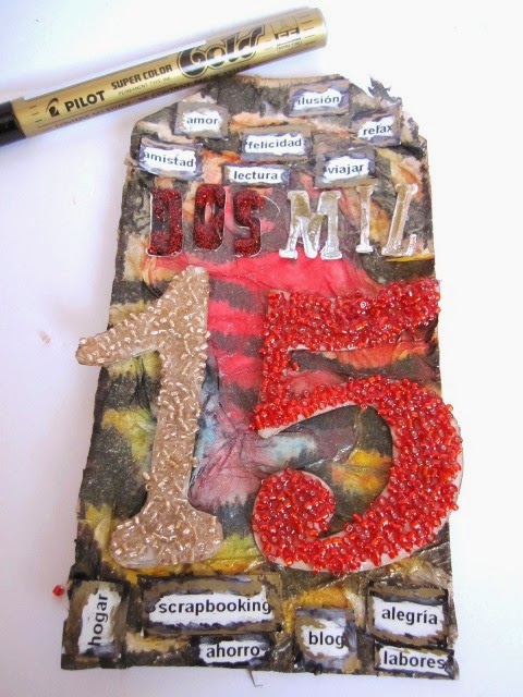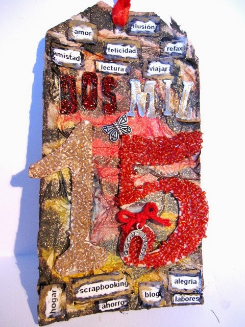 Y en este tag de Enero está todo ello aunado: mis propósitos y objetivos para 2015 resumidos en un tag para que me sirva de inspiración a lo largo de todo el año, mi auto-reto de hacer mi versión low-cost del tag mensual de Tim Holtz, aprender técnicas nuevas, desarrollar la creatividad, ?