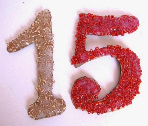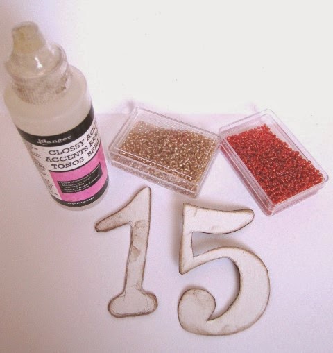 Una capa de glossy accents (¡¡¿qué haría yo sin él?!!), verter las cuentas encima para que se adhieran, dejar pasar un ratito, poner la letra/número en vertical para que se suelten las que no se hayan pegado del todo y listo vuestro caviar embossing!!