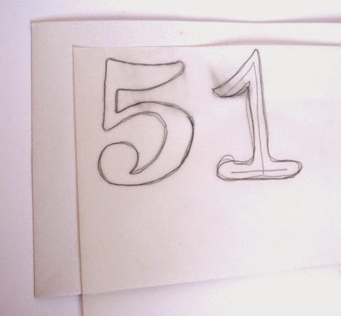 Aunque para los números grandes ya tuve que tirar de imaginación: dibujarlo en papel vegetal (o cebolla) con lápiz, marcarlos bien por detrás para calcarlos en una cartulina y recortarlos con tijera.