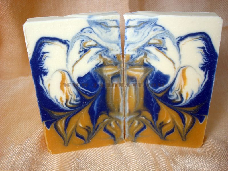 Voy a poneros las siguientes fotos de mis jabones y a ver a que os recuerdan, para mi se asimilan a las imágenes que siempre salen en las películas en las que aparece el psicólogo analizando a los pacientes con sus imágenes de psicoanálisis. He estado buscando y se llama “Test de Rorschach” para definirlas un poco os diré que se trata de un test que se utiliza principalmente para evaluar la personalidad. Consiste en una serie de 10 láminas que presentan manchas de tinta, las cuales se caracterizan por su ambigüedad y falta de estructuración. Las imágenes tienen una cierta simetría, no absoluta, que proviene de la forma en que originalmente se construyeron: doblando una hoja de papel por la mitad, con una mancha de tinta en medio. Al volver a desplegarlas, H. Rorschach fue encontrando perceptos muy sugerentes que daban lugar, por su carácter no figurativo, a múltiples respuestas. El psicólogo pide al sujeto que diga qué podrían ser las imágenes que ve en las manchas, como cuando uno identifica cosas en las nubes o en las brasas. A partir de sus respuestas, el especialista puede establecer o contrastar hipótesis acerca del funcionamiento psíquico de la persona examinada.