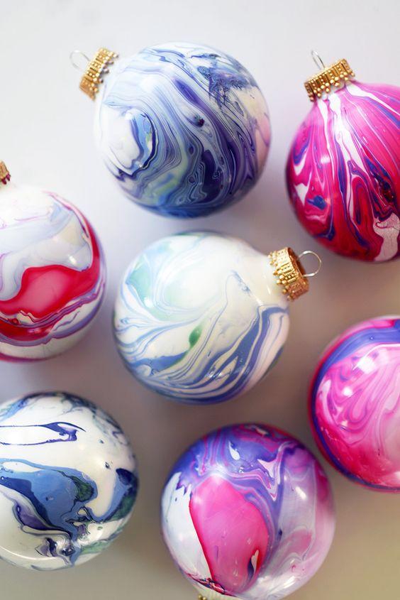 Para pintar las esferas tranparentes, debés colocar pintura en el interior y moverlas hasta cubrir por completo, luego podrás pintar el exterior como te guste.