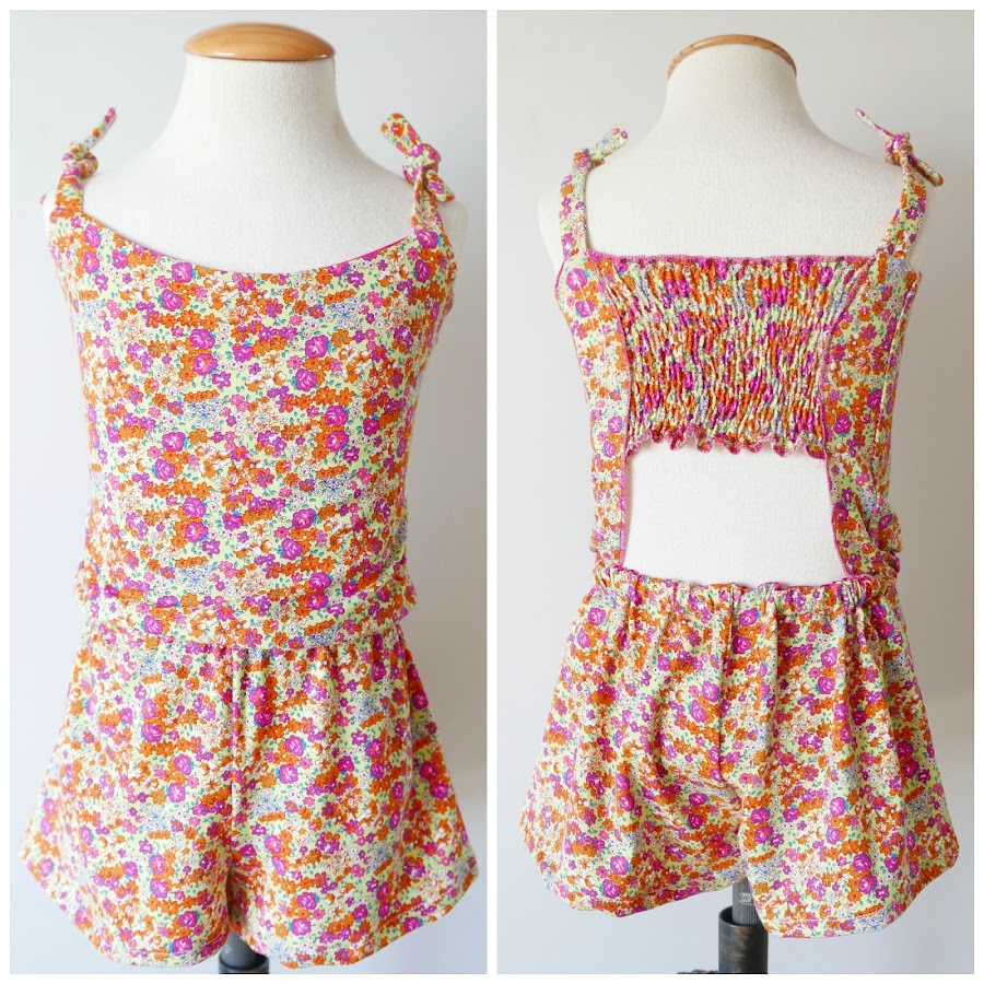 Pero la espalda es la que sin duda con su banda elástica y su diseño de plena actualidad, abierto, hacen que sea lo más especial del mono. Además es un detalle que puedes transformar a tu gusto, ya que el patrón PDF, además de estar escalado para niñas de 3 a 7 años, te ofrece las dos posibilidades de espalda.