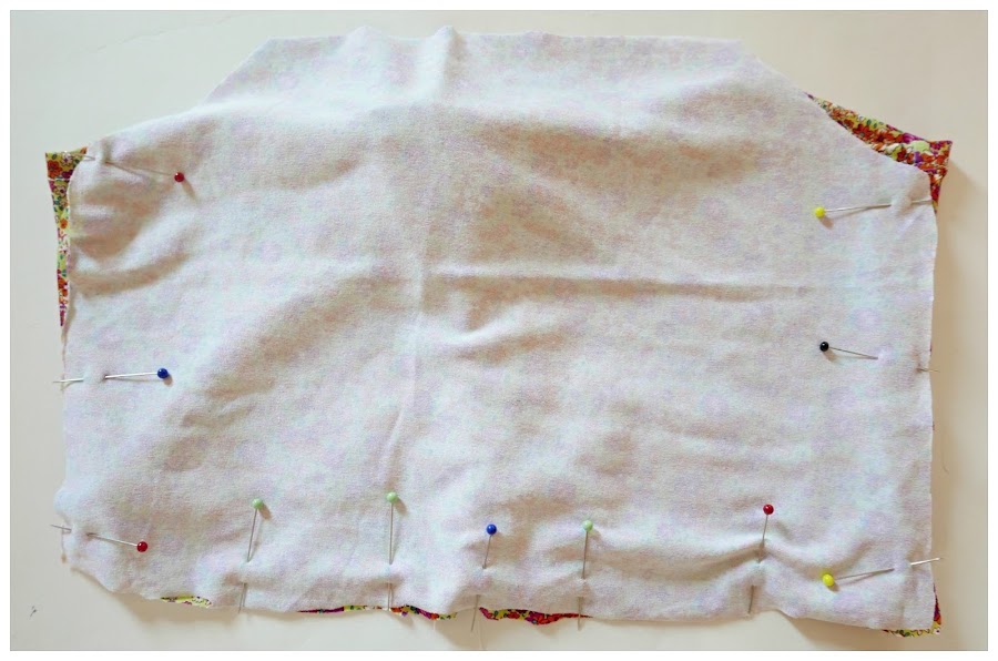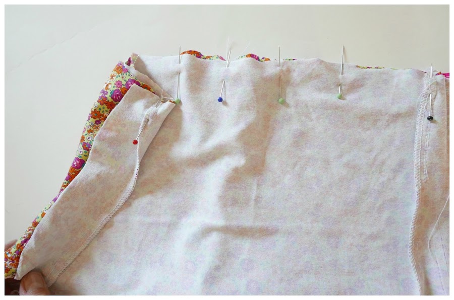 5.Colocamos alfileres sobre la zona de la cintura, para unir la vista