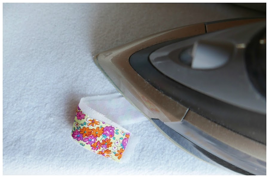 9. Pasamos la cinta de goma, cortada a la medida de la cintura, dejando una holgura de comodidad de unos centímetros extra