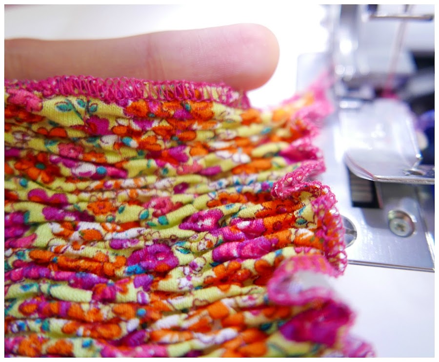 18. Coseremos los bordes con la remalladora e hilo en contraste
