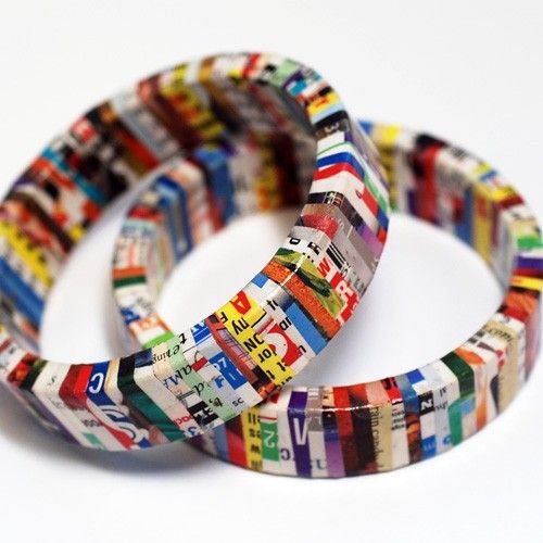 Vía: Pinterest.10- De revista. Con tiras de revistas están hechas estas pulseras tan originales. ¡Qué cosas tan bonitas se pueden hacer reciclando!