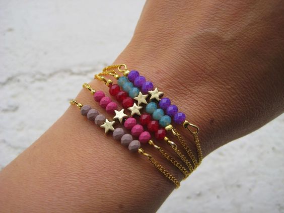 8- Estrellas de colores. Una sola de estas pulseras ya es bonita por sí misma, pero combinada con alguna más en otros colores, me parecen todo un acierto.