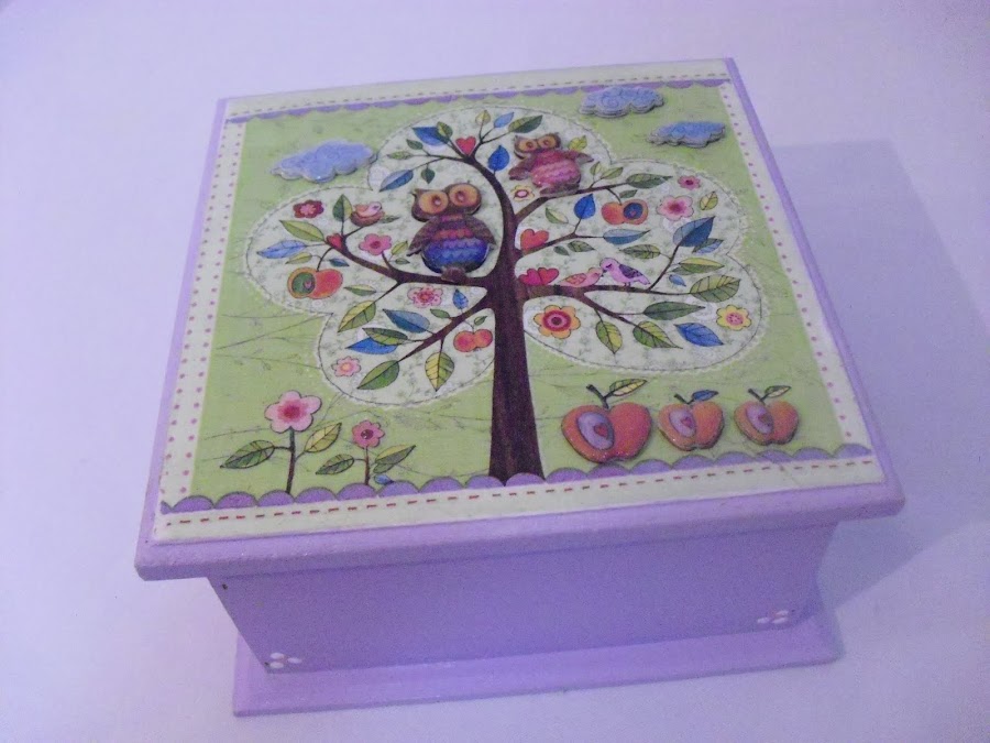 Esta es la caja con un motivo muy dulce de unos búhos