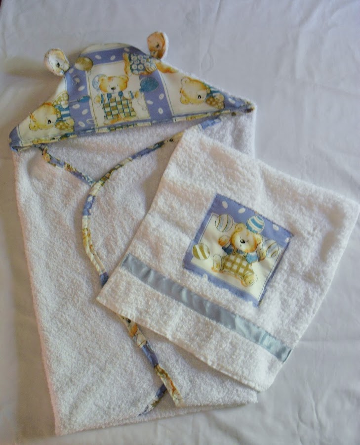 Les muestro aquí lo que le he realizadoUn Set de Baño un Toallón con capucha y orejitas, muy dulces!!!