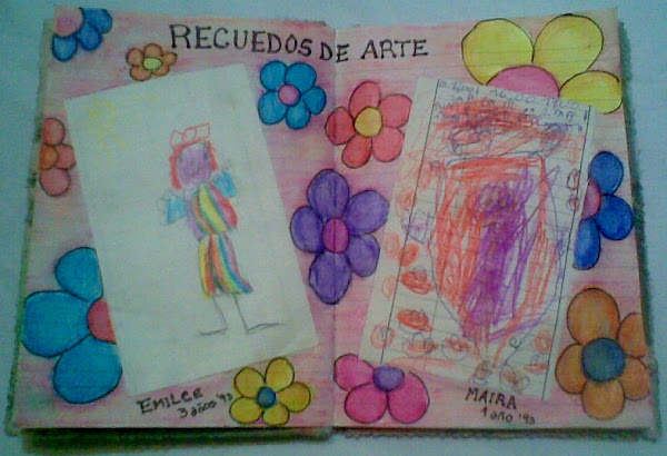 Les traigo mi tercera hoja de mi Arte Journal propuesto por Ada, en esta ocación "Recuerdos de Arte" inspirado en los dibujitos que me regalaban mis hijas cuando eran chiquitas, Emilce tenía 3 añitos y ahora 21 estudiando para el Profesorado de Maestra de Nivel Inicial y Maira tenia 1 añito y ahora 19 por ser mamá dentro de poco. Como pasa el tiempo!!!
