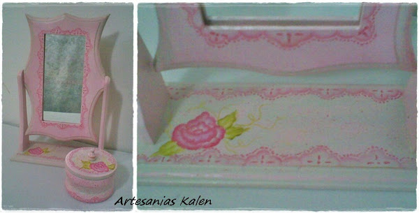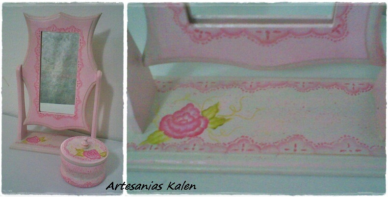 Aquí el Espejo y Alhajero con los detalles de la rosa y puntilla