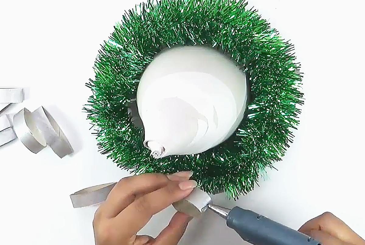 Pinta los tubos de cartón del color que prefieras (en este caso los pinté de plateado para que haga contraste con la guirnalda verde).