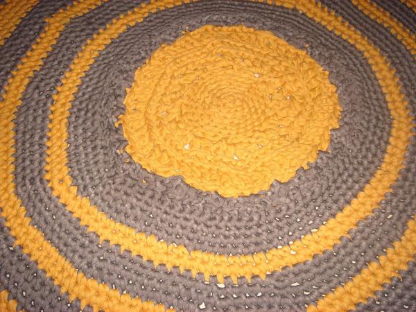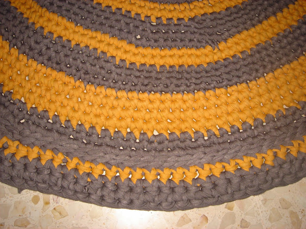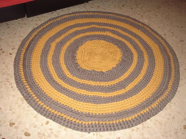 Pues ya tengo mi terdera alfombra hecha de ganchillo con hilo de trapillo, para este modelo solo he utilizado dos colores el gris marengo y el color mostaza, una combinacion muy bonita.