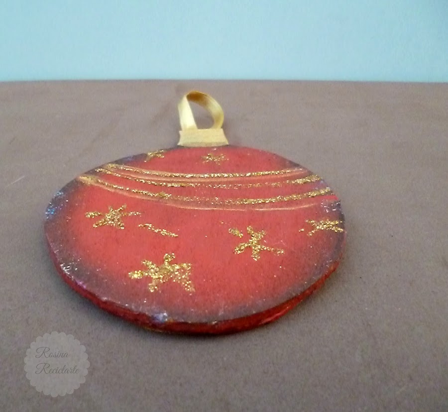 Para terminar,le puse una cinta para colgar y ya estaban listos mis primeros dos adornos navideños.