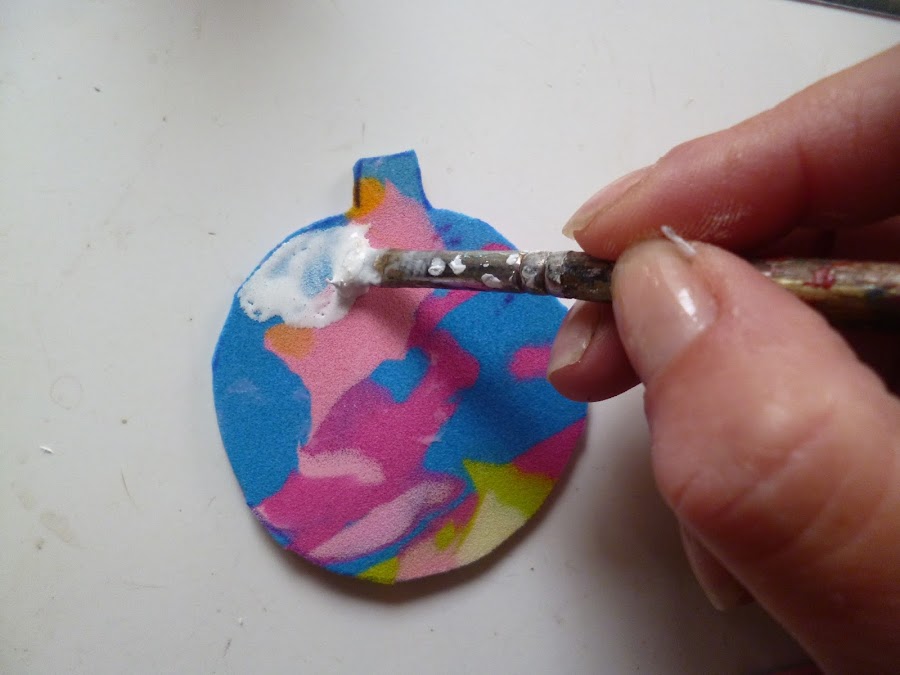Las decoré con cola con brillantina y cuando secaron las pegué entre si.