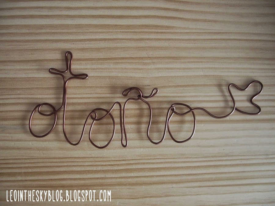 Se trata de ir dando forma con las manos al alambre, para formar la palabra que deseemos, en este caso "otoño".