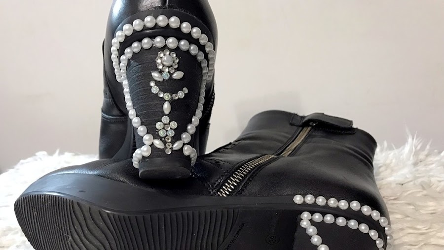 Solución: Decoras el tacón con perlas y botas nuevas, así de simple.