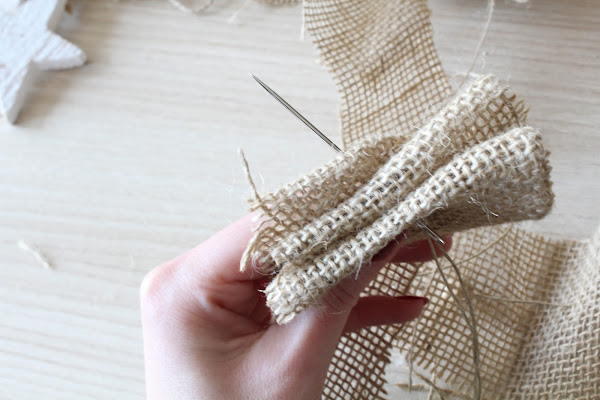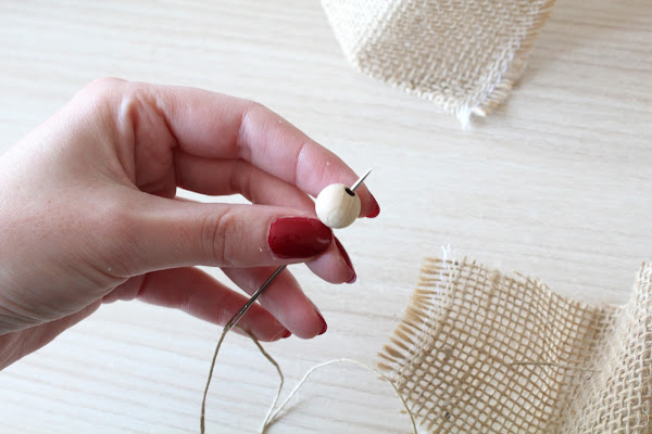 Esta idea es muy fácil de hacer se trata de ir cosiendo la tela de esparto con cuerda y ponerle detalles de madera natural, ideal para decorar un bufe o la entrada de casa.
