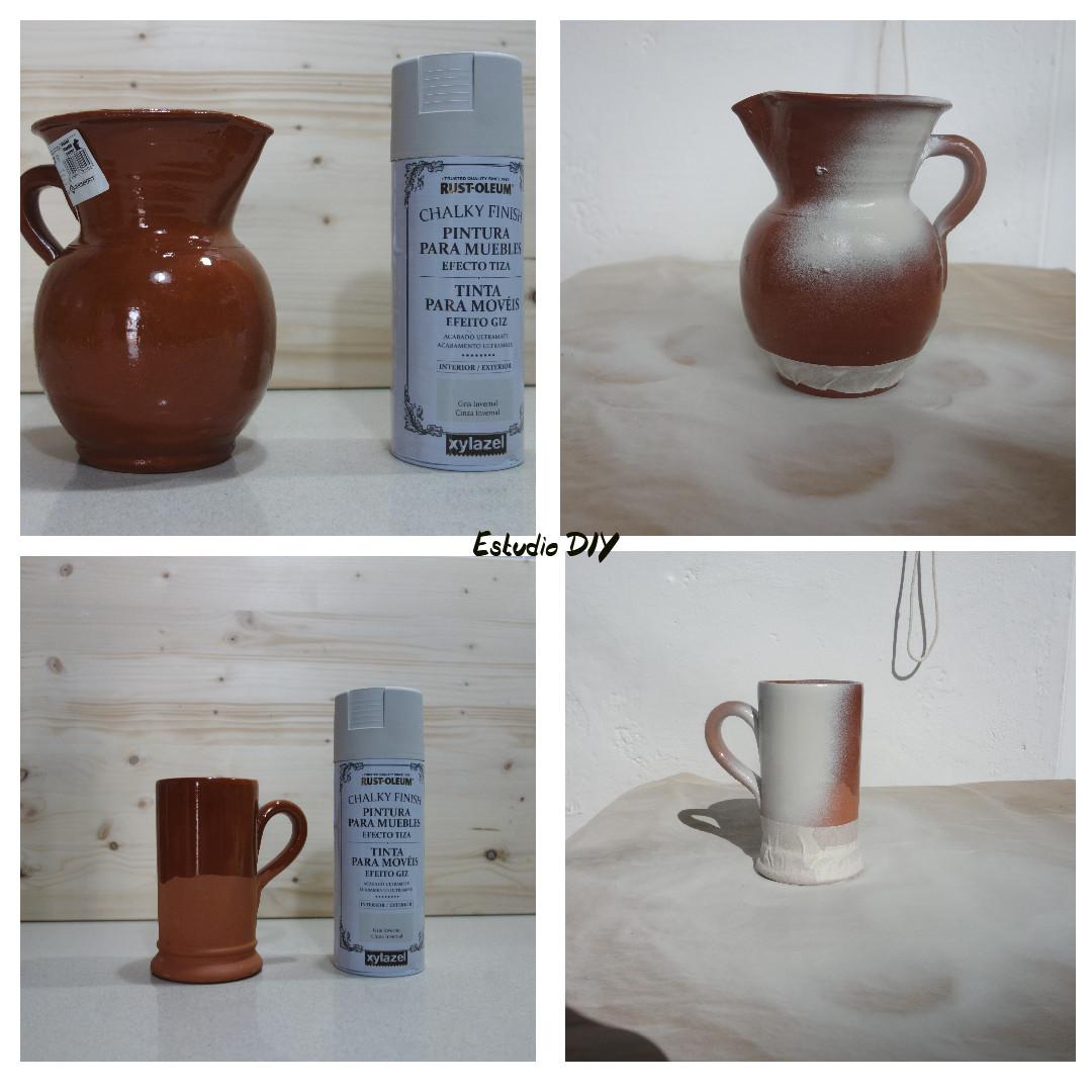 La pintura en spray en objetos de barro funciona también muy bien, sobre todo si se trata de Chalk paint, que como casi todo el mundo sabe, es una pintura que se adhiere a multitud de materiales, sin necesidad de imprimación o lijado. Con esta pintura, podemos pintar directamente, siempre que el área este limpia y seca.