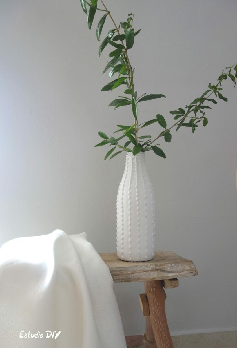 Otra forma de cambiar objetos o transformarlos es utilizando pintura acrílica y bicarbonato de sodio. Con esta técnica conseguiremos añadir textura a piezas de cristal, cerámica, plástico, etc. Además, gracias a esta combinación y a la elección correcta de los colores, podemos dar acabados que imiten la terracota o el barro.