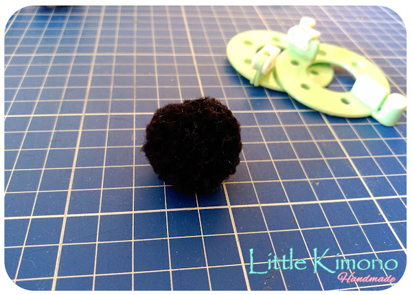 Para el primer personaje en mi caso es todo de un sólo color, así que rellenamos la "pomponera" (como la llamo yo^^) de un sólo color, en mi caso negro. Cortamos e igualamos como os mostré en el post: Kit para hacer pompones, tenéis el paso a paso para seguir allí ;)
