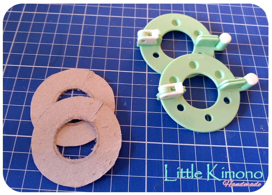 1. Para hacer los pompones podemos usar la herramienta que os enseñé hace un par de semanas aquí, o los típicos cartoncitos handmade que también os enseñé aquí.