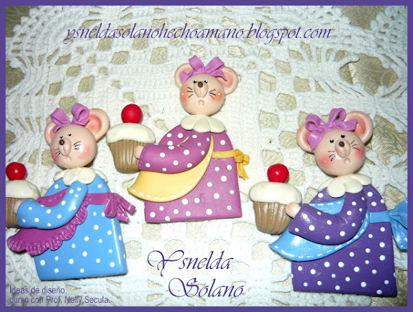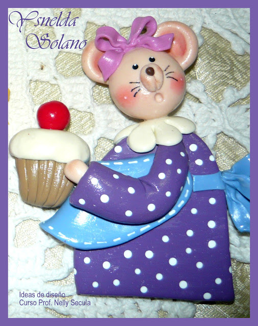 Es de un curso de navidad que tuve la oportunidad y el honor de realizar con una reconocida Profesora de mi país, hace mucho muchos años, recuerdo que el curso, a parte de la ratoncita, incluía una barquilla, una cara de santa y una taza con galleta de jengibre, preciosas piezas.