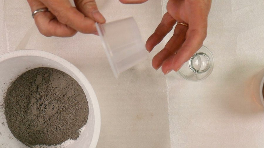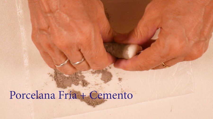 Para hacer los adornos emplearé porcelana fría que voy a mezclar con el mismo cemento que usé, incorporándolo de a poco, amasando hasta integrar la cantidad de polvo que deseo hasta darle color.