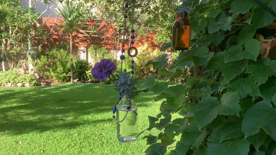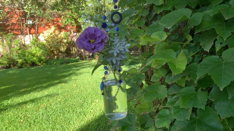 La idea era hacer cosas sencillas, y quería algo para colgar, principalmente en el jardín y así salió y de paso aproveché lo que tenía.