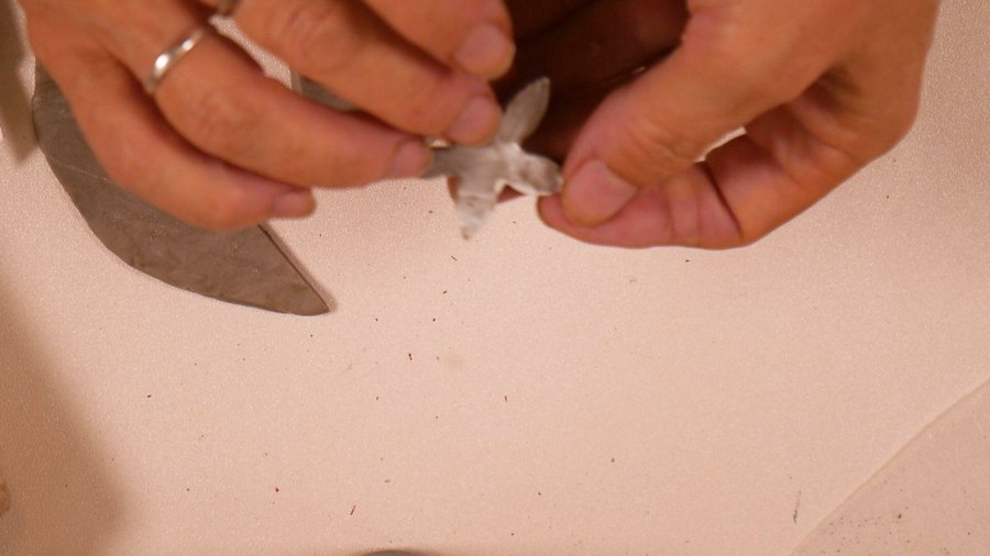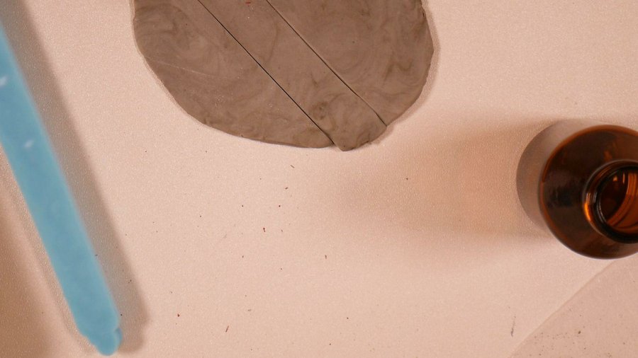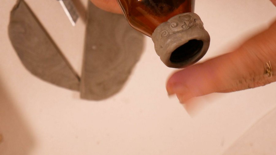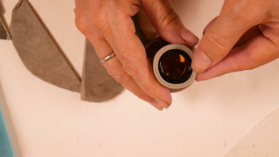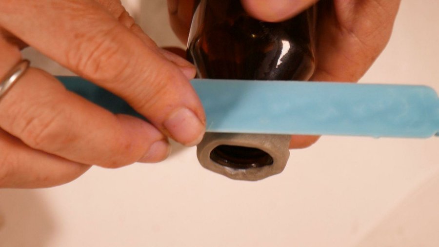 La estiro y recorto una porción en forma de cinta de unos pocos milímetros de espesor que serán para cubrir la rosca de la boca del frasco.