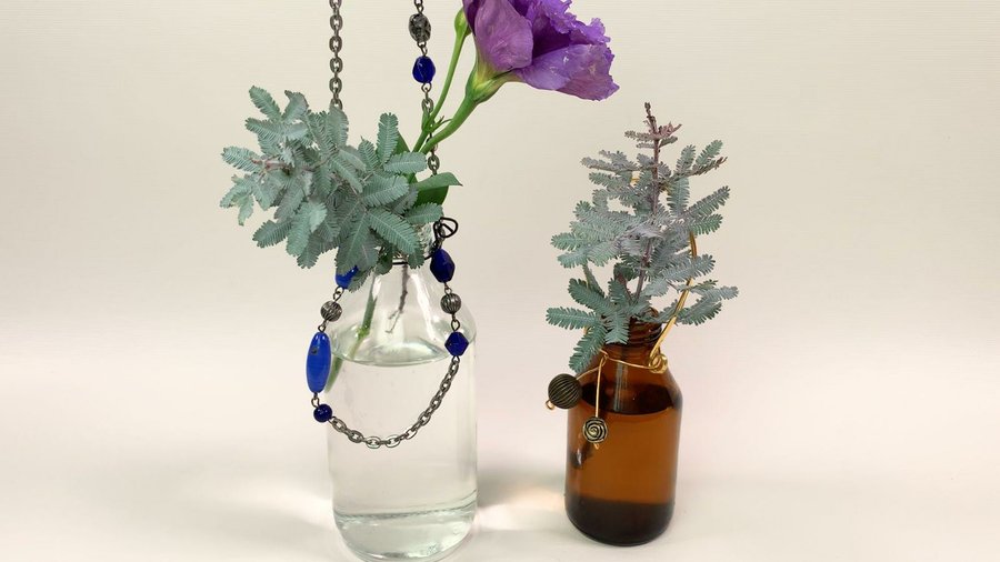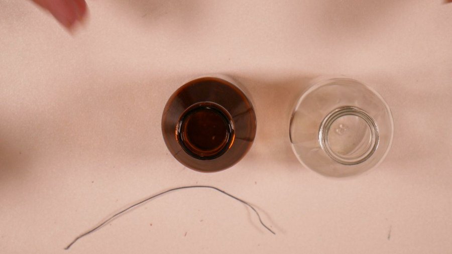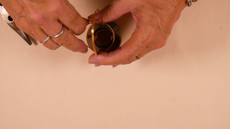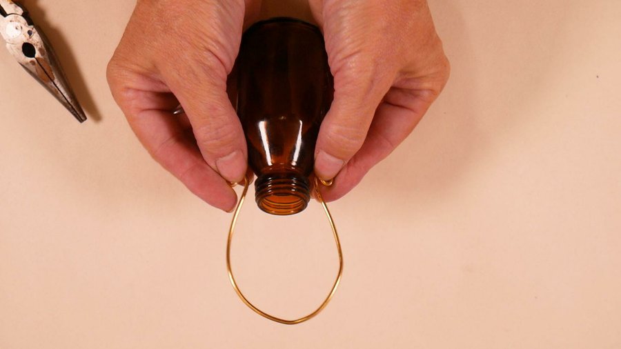 Para el frasco de color utilizo 2 trozos de alambre dorado, uno más grueso pero no es necesario.
