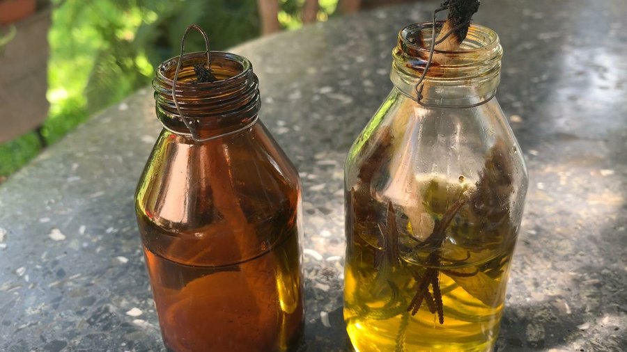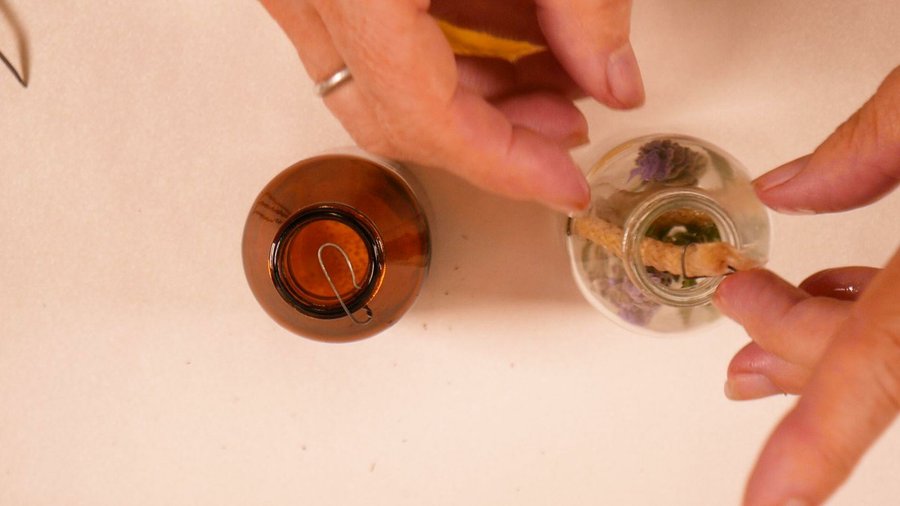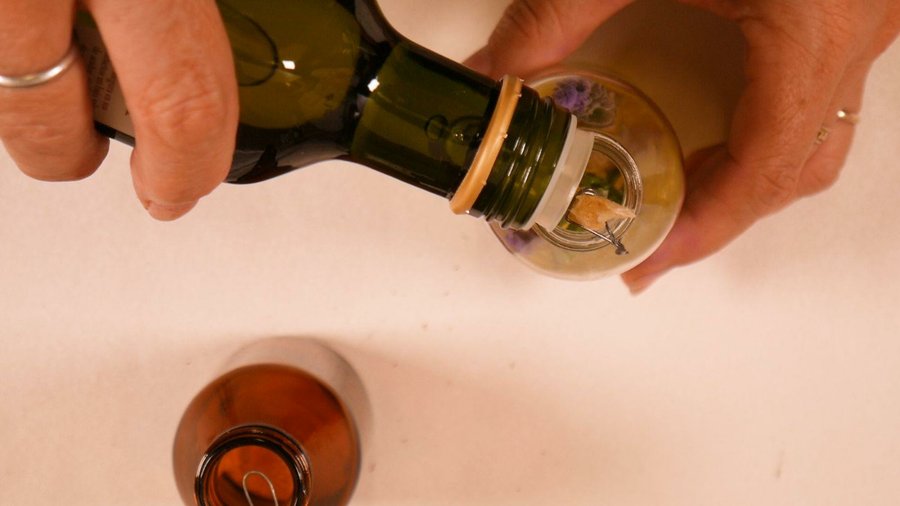 Cuando este paso ya está se cubre con aceite todo el frasco y se puede completar si que quiere con unas gotas de esencia a gusto.