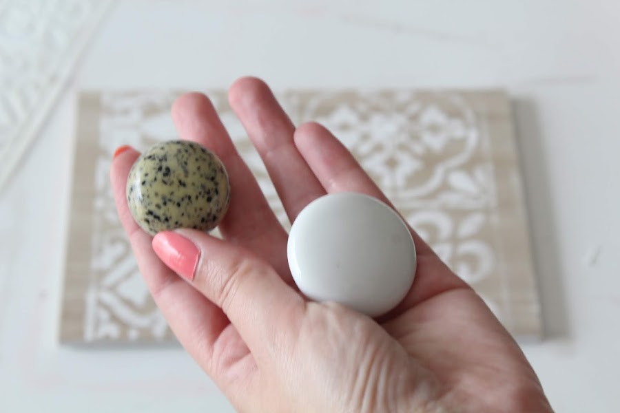 2 Paso: Una vez tenemos el motivo seco, podemos ponerle un pomo bonito, los podéis encontrar en diferentes tiendas y ferreterías.