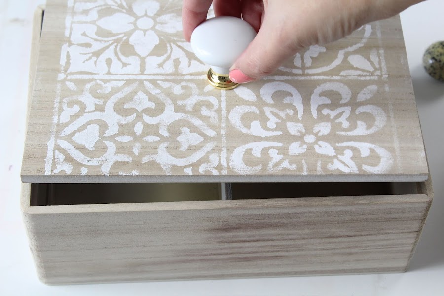 2 Paso: Ponemos el pomo también con silicona caliente y ya tendremos una cajita genial para regalar.