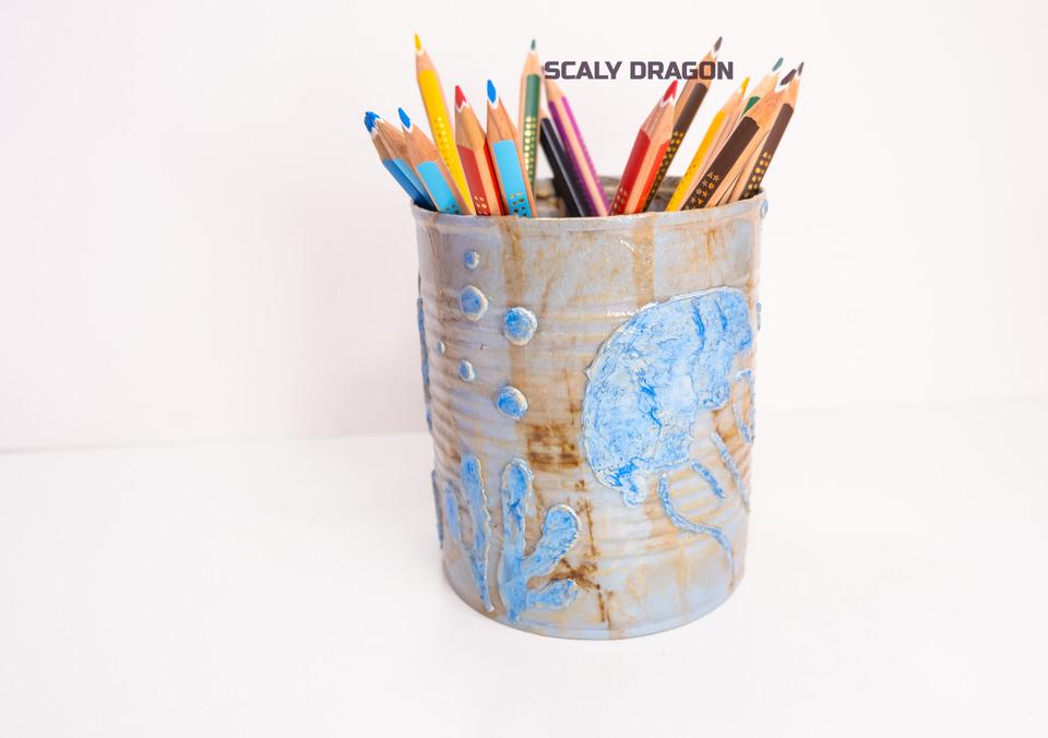 Yo se las presento como un porta lápices pero su uso es infinito ya que se puede colocar lo sepillos y pasta de diente, para usar como Maseca y sembrar una suculenta, colocar brochas para maquillaje entre muchos objetos o materiales.