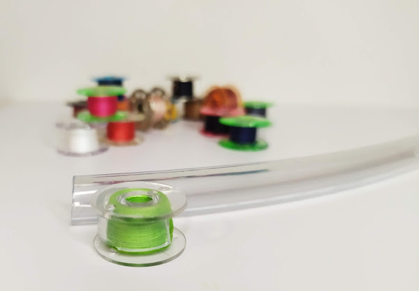 La ultima, es la que menos me gusta pero aun asi muy util, usaremos los separadores de los dedos que se usan para hacer la pedicura. Encajamos cada canilla en una hendidura y del tiron tenemos 4 canillas bajo control.