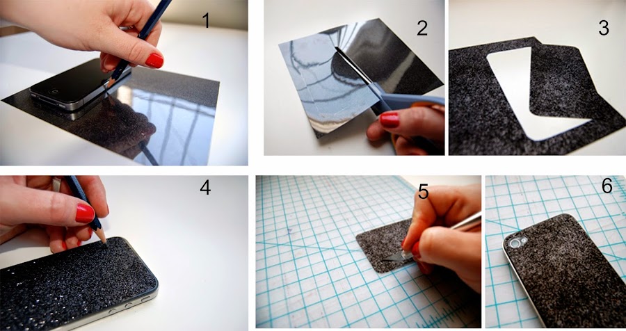 3-Recorte dentro de la linea trazada, para evitar que nos sobre en los bordes. Con cinta de doble faz pegamos la hoja al celular.