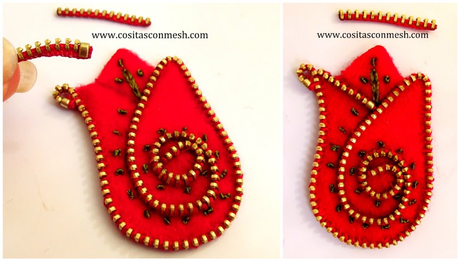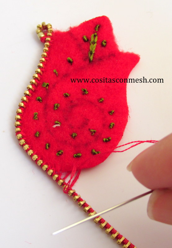Por último, cosemos la cremallera en todo el contorno del tallo, y las hojas.