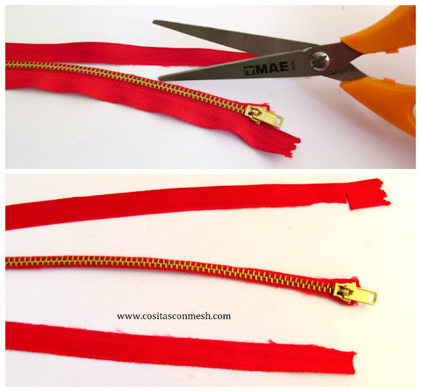 Cierre ( en este caso usé un cierre rojo de 50 cm ) puedes usar uno de 30 cm y de otro color.