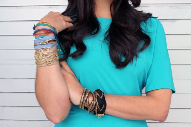 30. Pulseras con velcro y tachas vía Brit+Co.