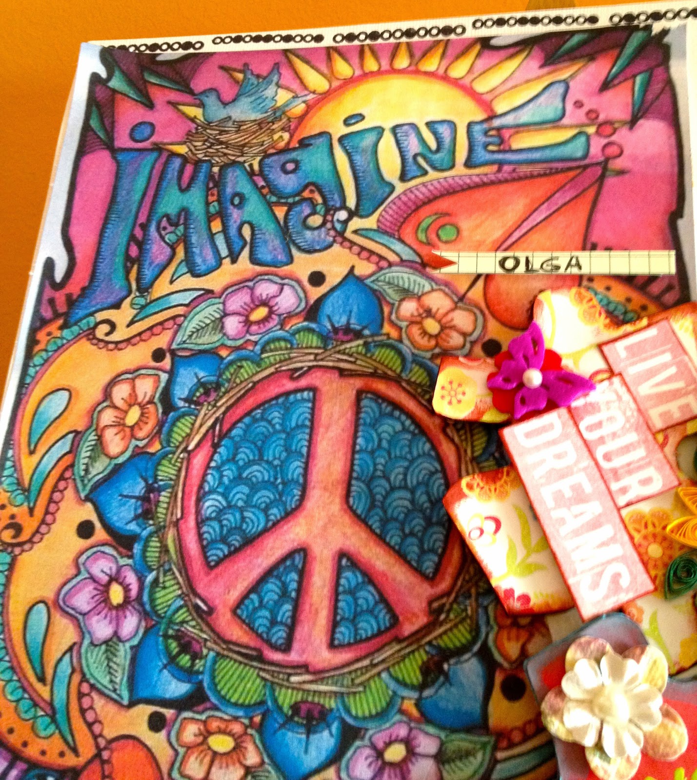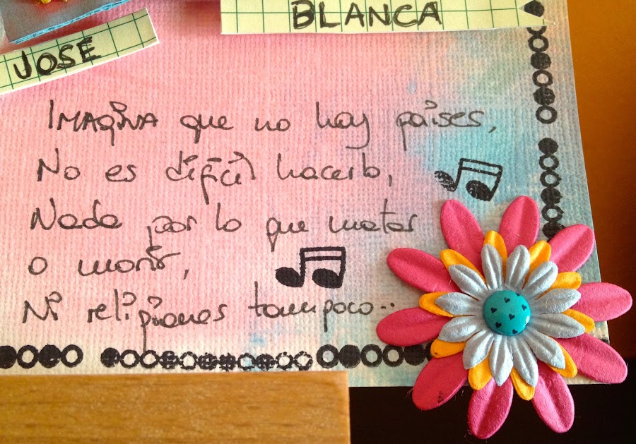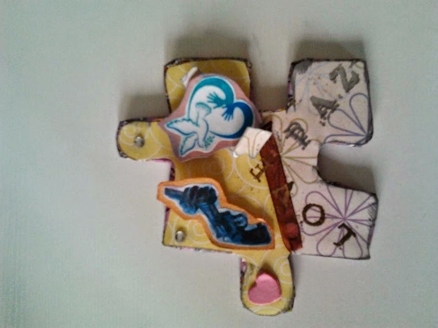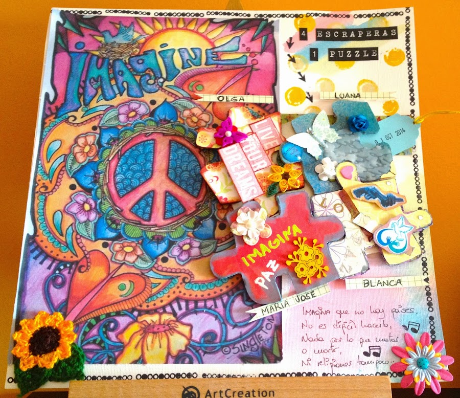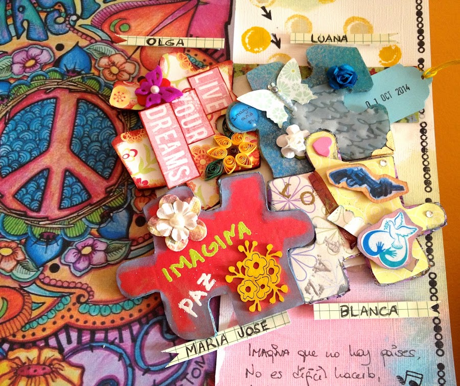 Nosotras elegimos la canción de IMAGINE de los Beatles y la plantilla del puzzle desestructurado y nos fuimos enviando a cada una una pieza. Como eramos 4 tuvimos que hacer 4 piezas iguales o diferentes, quedarnos 1 pieza para nosotras y el resto enviarlas a cada una por correo.