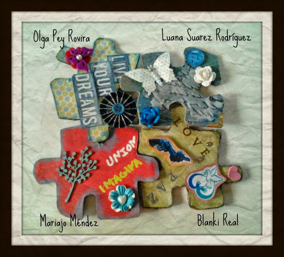 Hoy os enseño un LO muy especial, ya que desde el grupo de Facebook SCRAP PARA PRINCIPIANTES, nos propusieron en el mes de Septiembre hacer un grupo de 4 chicas que vivieran en el mismo país aunque fueran de ciudades distintas. Una vez echo los grupos nos propusieron hacer un puzzle cada una con una pieza interpretando una canción de la lista que nos pusieron y a elegir una plantilla de puzzles que también nos propusieron.