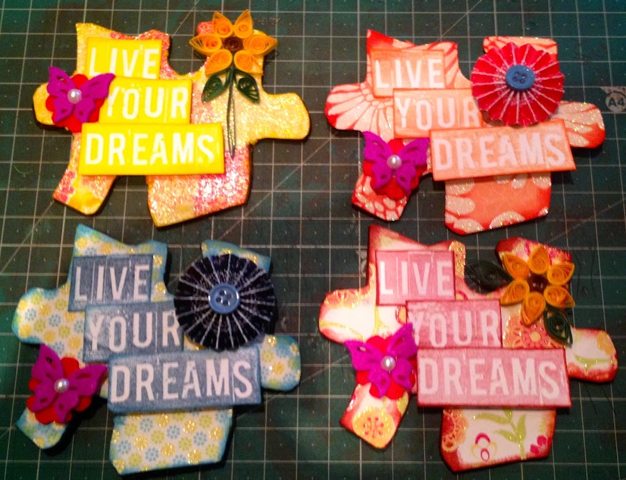 Aquí las 4 piezas juntas, que por cierto la pieza roja se me olvido sacar foto y es de Mariajo, que estuvo unos días malita y la pobre con las prisas de hacer la pieza tampoco hizo la foto.