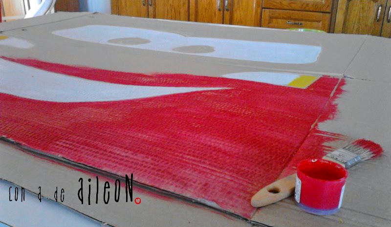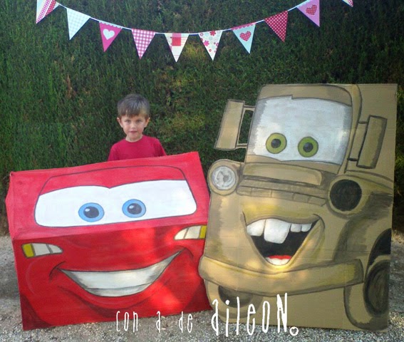 Hice un photocall de Rayo y Mate a tamaño "real" para niños, con una caja de cartón y acrílicos: