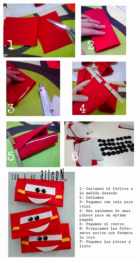Me queda enseñaros detalles de su fiesta de cumpleaños y acabaré con un DIY muy simple para hacer una fundita de RayoMcQueen, personalizable para cualquier dibujo animado que os guste, jeje.